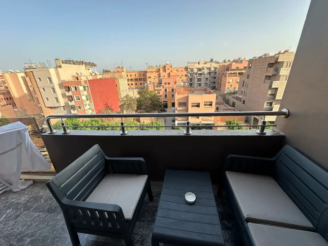 Located in a quiet area, close to all amenities, our spacious home offers an ideal setting to work with peace of mind or to enjoy relaxing family moments;Whether you want to recharge after a day of sightseeing or finding a warm setting that will make you feel at home, our modern apartment is ideal.Book now and immerse yourself in an unforgettable experience in Marrakech.The spaceNB: Like all hotels in Morocco, we do not receive unmarried Moroccan couples.Your apartment has a bright, sunny bedroom with a mattress that promises you a comfortable night's sleep. You can enjoy a beautiful view of Mohammed VI Avenue from your balcony.The bathroom is designed for relaxation and rejuvenation, providing a peaceful space for you to recharge.In the living room you will find 4 comfortable sofas where you can relax and enjoy the view on the smart "SAMSUNG TV 4K 50" With access to Netflix and IPTV you can follow your favorite shows and movies. In addition a balcony with a table and 2 chairs where you can enjoy a panoramic view of Mohammed VI Avenue.Next to the living room is a well-equipped modern kitchen, perfect for enjoying prepared meals.We understand the importance of staying connected, which is why we offer a high speed internet connection so you can always stay connected.NB: You have access to the parking lot.Guest accessWe can welcome our guest at any time, something that sets us apart from others.Keys are always available at the caretaker who is always present 24/7Other things to noteThe apartment is close to:Gare De Marrakech (McDonald's): 2 min(by Car)Jardin Majorelle: 08 min (by Car)Jamaâ El-Fna: 09 min (by Car)Menara Mall: 3 min (by Car)CARRE EDEN SHOPPING CENTER: 2 min (by Car)Plaza (McDonald's): 1 min (by Car)Airport: 11 min (by Car)