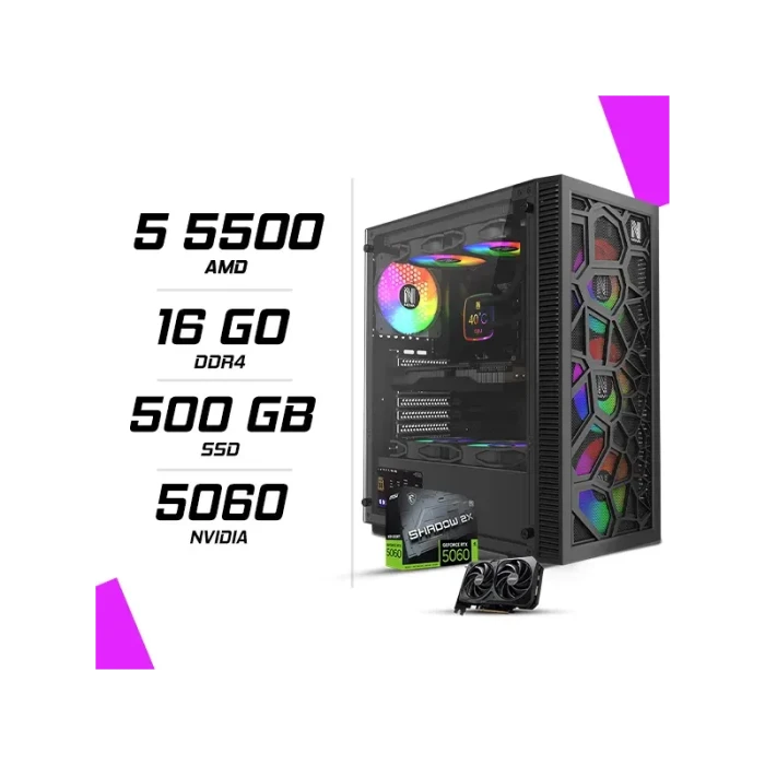 Nextlevelpc | PC Gamer marocGaming rental in casablanca - cheap Gaming hireFind the perfect Gaming rental in casablancaPC Gamer AMD Ryzen 5 5500 / 16GB DDR4 / 500GB SSD / 550W BROZNE / MSI RTX 5060 8Gnextlevelpc.ma
