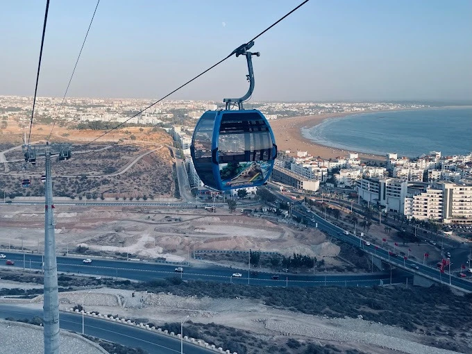 Agadir Téléphérique Tour 🚡Experience breathtaking views of Agadir city with a one-hour cable car ride. This thrilling activity is perfect for all ages and offers a unique way to see the city from above.HighlightsRide Agadir's iconic TéléphériqueEnjoy panoramic views of the city, mountains, and oceanA perfect activity for photography loversRelax in a modern and safe cable car systemDetailsDuration: 1 HourAvailability: DailyPrice IncludesTéléphérique TicketFor a unique perspective of Agadir, book your Téléphérique tour today! 🚡
